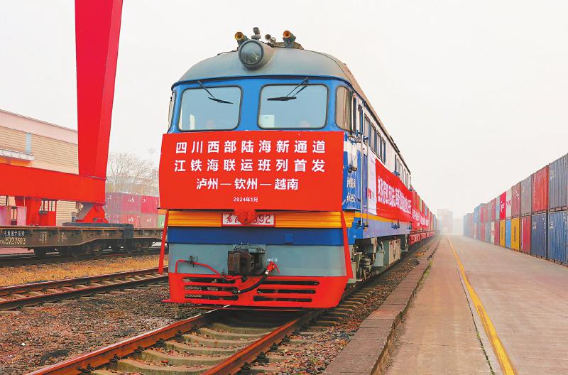 伴随着一声汽笛长鸣,一辆满载着“乐山产”“内江产”以及“泸州造”货物的列车从泸州港缓缓驶出,标志着四川西部陆海新通道江铁海联运班列首列发车。该班列通过隆黄铁路叙永至毕节段(以下简称“隆黄铁路叙毕段”)抵达广西钦州港,再从海运出口,较以前的联运方式节约两天以上时间,节约运输成本20%。