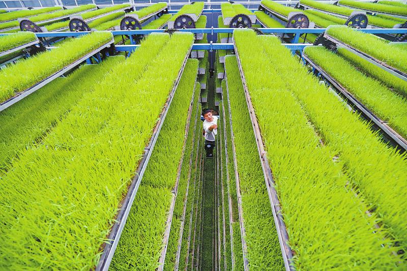 通过“工厂化”育秧技术的应用,这里实现了秧苗“坐电梯”、秧盘“上轨道”。