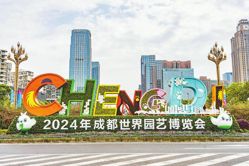 近日,在成都天府大道,2024年成都世界园艺博览会主题装置已布置完成。 张翔升 摄(C视觉)