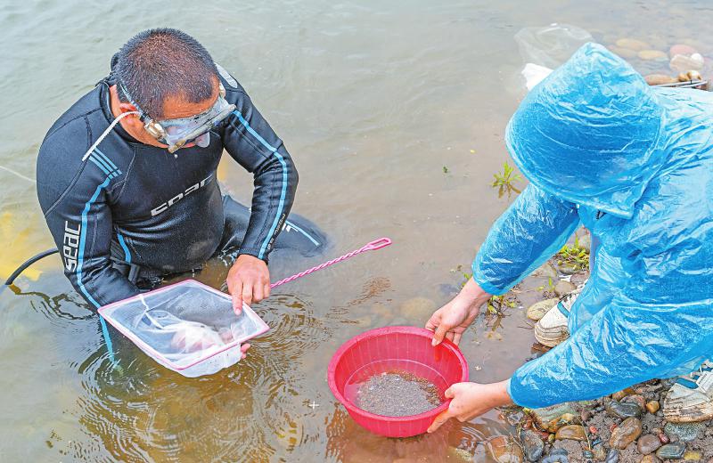 今年,科研人员不仅从宜宾市长宁县长江上游自然保护区珍稀鱼类救护中心调来62尾亲鱼,还通过拦网“圈”出长江竹岛周边2万平方米水域。同时,通过地形、底质(江河底部物质)和流速场营造等方式,首次改造了长江鲟产卵场。例如,针对长江鲟喜欢在鹅卵石密布水域“谈恋爱”等特点,科研人员特地从其他地方采集鹅卵石铺下,让被圈中水域更加贴近长江鲟的理想“婚房”。