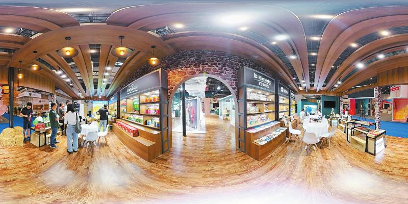4月12日拍摄的第四届中国国际消费品博览会主宾国爱尔兰国家馆展区一角(全景相机拍摄)。以“共享开放机遇、共创美好生活”为主题的第四届中国国际消费品博览会将于4月13日至18日在海南举行,届时将有来自71个国家和地区的4000多个品牌参展。目前,各项工作已准备就绪,静待启幕。 新华社记者 田薇薇 摄