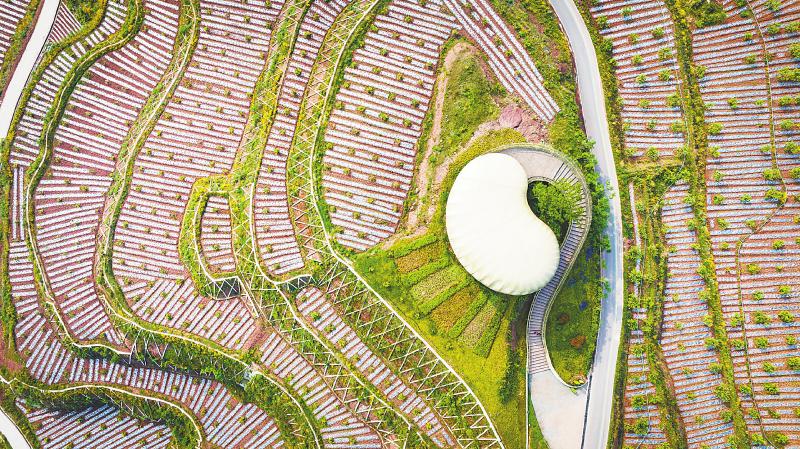 四月十三日,资阳市安岳县粮经统筹促进柠檬高质量发展示范园区内,改造后的梯田美如画卷,梯田里栽种了柠檬树,刚覆盖的地膜格外惹人注目,一派生机勃勃。张天富摄(C视觉)