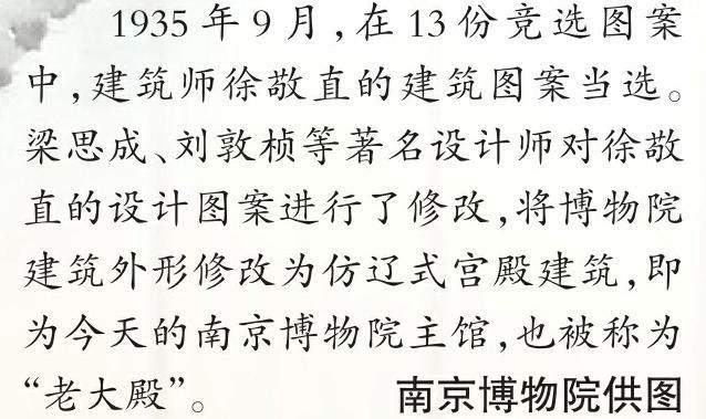 1933年,由中国近代著名教育家蔡元培先生倡议,国立中央博物院(南京博物院前身)筹备处在南京成立。其主体建筑由著名建筑师徐敬直设计,后在梁思成、刘敦桢指导下,修改为仿辽代奉国寺大殿建筑。这座庄严宏伟,体现“中国建筑之固有特色”(梁思成语)的大殿,如今已成为南京标志性历史文化景观。
