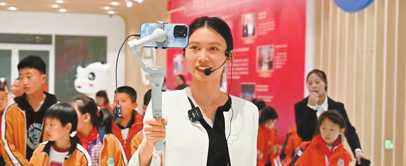 伊利现代智慧健康谷开园半年多时间已接待游客60多万人次,实现营收约1800万元。图为健康谷工作人员在接待研学团队。四川日报全媒体记者 李志强 摄