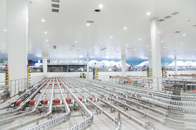 伊利现代智慧健康谷里的高速牛奶灌装生产线。 四川日报全媒体记者 李志强 摄