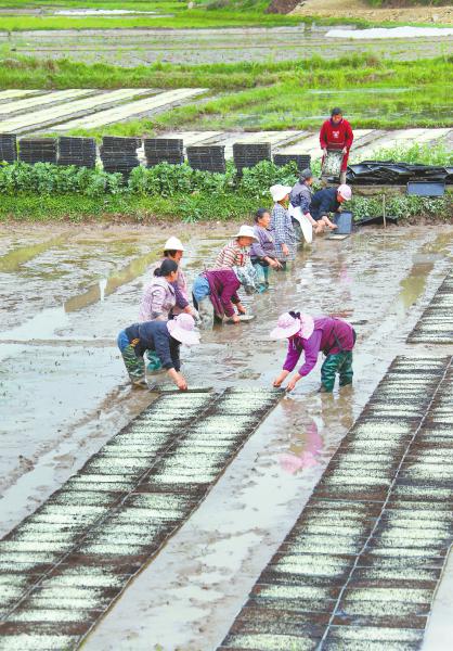 正值春耕育秧时节,巴中市各地有序推进春耕育苗作业。图为4月12日,南江县长赤镇建华村村民在稻田里育秧苗。 夏雨 摄