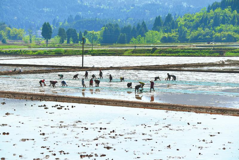 4月12日,蓬安县河舒镇小板桥村村民抢抓农时,积极开展水稻集中育秧工作,田间地头随处可见忙碌的身影,勾勒出一幅绚丽的春耕画卷。 汪泽民 摄