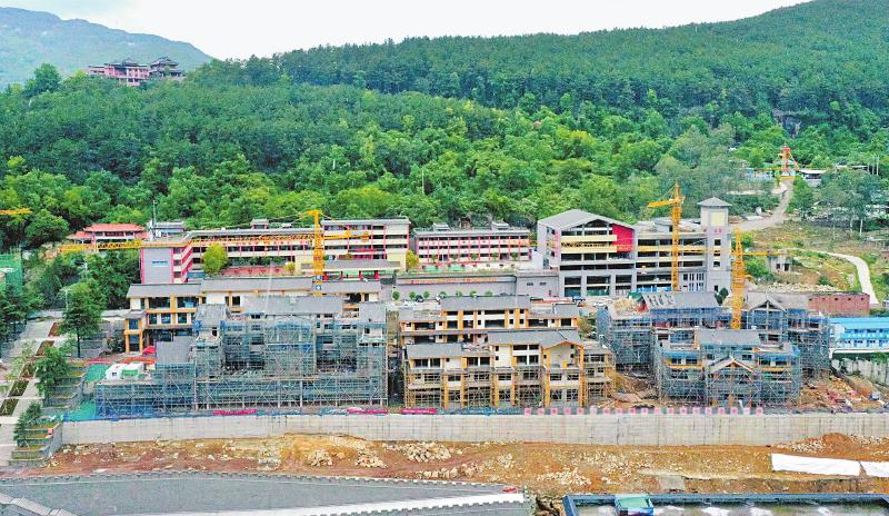 4月18日,在巴中市南江县断渠景区米仓古道北城文商旅康养服务综合体项目施工现场,工人正在进行外立面和内部装饰施工,以“春忙模式”冲刺工程进度。该项目建成后,将融入米仓古道文化特色,为游客提供住宿、餐饮、商业、会议、康养、休闲等综合性配套服务。 肖定怀 摄(C视觉)