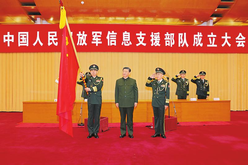 新华社北京4月19日电(记者 梅常伟)中国人民解放军信息支援部队成立大会19日在北京八一大楼隆重举行。中共中央总书记、国家主席、中央军委主席习近平向信息支援部队授予军旗并致训词,代表党中央和中央军委向信息支援部队全体官兵致以热烈祝贺。他强调,要贯彻新时代强军思想,贯彻新时代军事战略方针,坚持政治建军、改革强军、科技强军、人才强军、依法治军,聚焦备战打仗,按照体系融合、全域支撑的战略要求,锐意进取,扎实工作,努力建设一支强大的现代化信息支援部队。