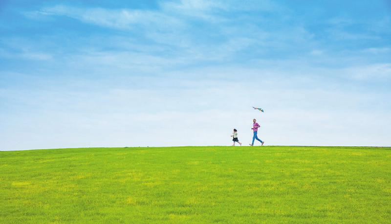 【天府新生活】二等奖《天地间》 2023年4月8日,一对父女在广安市迎宾公园放风筝,天蓝草绿,构成一幅人与自然和谐共生的美丽画卷。 张晓 摄