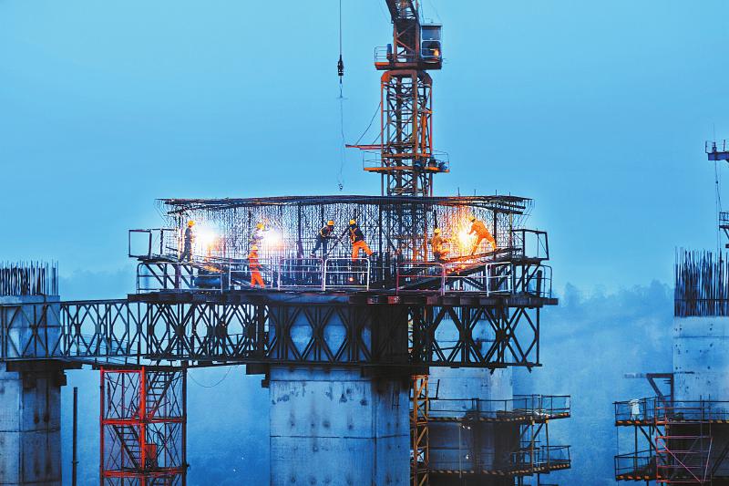 【劳动筑梦】二等奖《修建幸福桥》 2020年11月26日,工人们正在抓紧修建广安过境高速公路东环线及渝广高速公路支线渠江特大桥。 柴剑波 摄