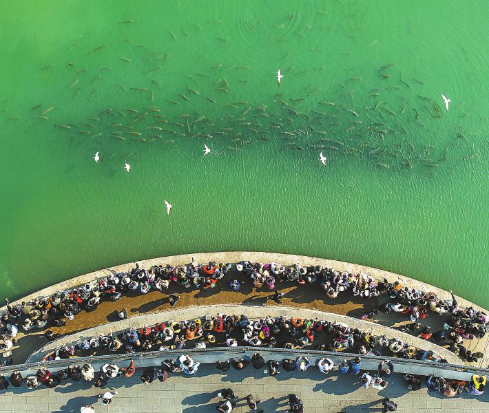 【天府新生活】一等奖《在长江观鱼赏鸥》 2023年11月19日,在宜宾市三江汇合处,红嘴鸥和野生鱼群同框共舞,引来众多市民与游客赏鸥观鱼,感受鸥翔鱼跃的生态画卷。 张光金 摄