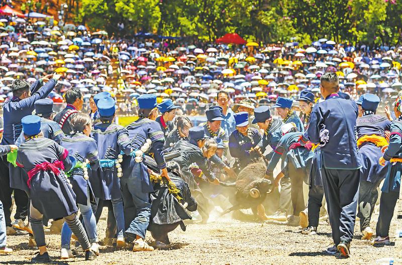 【天府新生活】二等奖《抢羊》 2023年7月22日,在凉山州普格县火把节上,当地妇女参加抢羊活动。 袁凤 摄