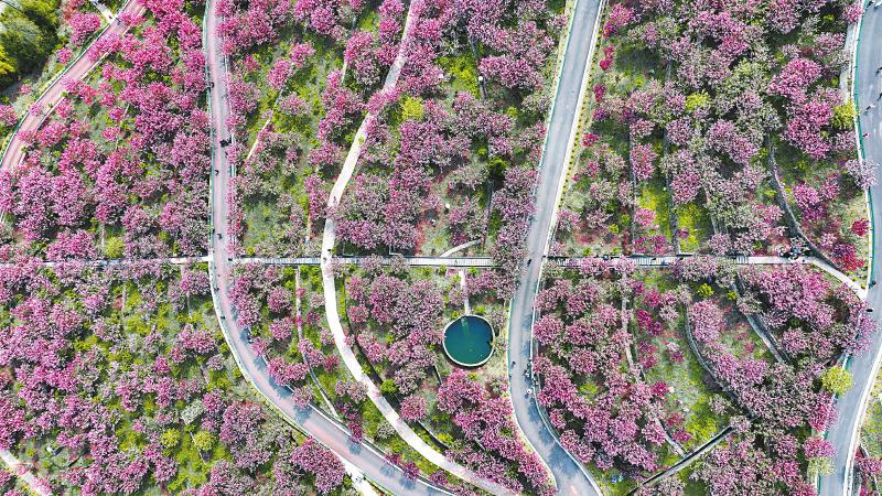 近日,古蔺县金兰街道神龟花谷百亩樱花绽放,吸引众多游客共赴这场浪漫之约。支力 摄