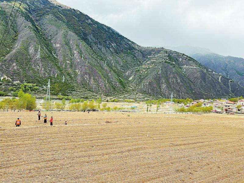 4月18日,阿坝藏族羌族自治州马尔康市脚木足乡孔龙村,村民泽郎在李浩杰的指导下,播种下一颗颗来自新都示范园的油菜种子。
