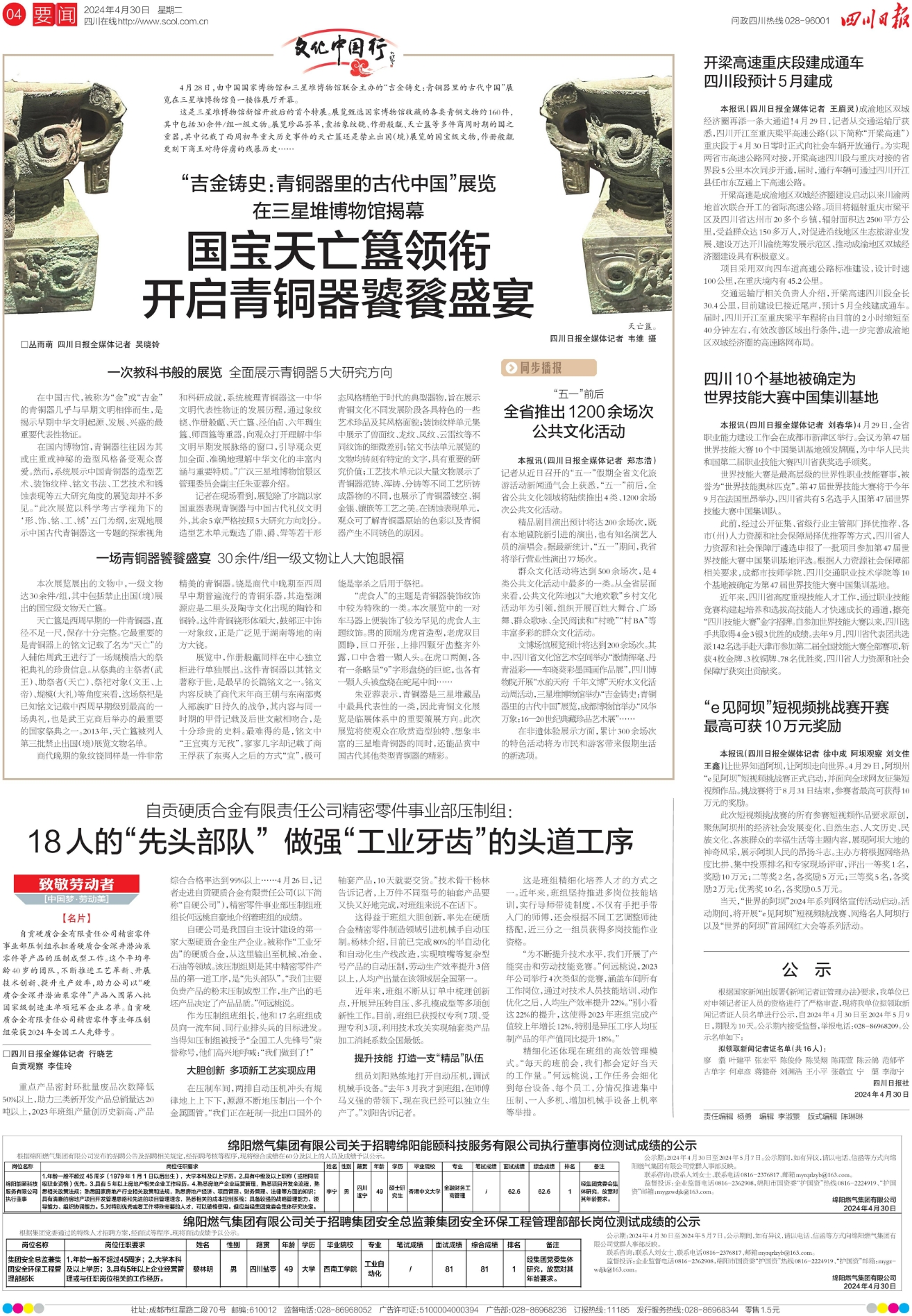 本报讯(四川日报全媒体记者 郑志浩)记者从近日召开的“五一”假期全省文化旅游活动新闻通气会上获悉,“五一”前后,全省公共文化领域将陆续推出4类、1200余场次公共文化活动。