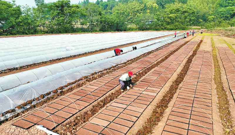 4月28日,眉山市仁寿县钟祥镇龙桥社区的村民在进行水稻旱地育秧,实现节本增效。