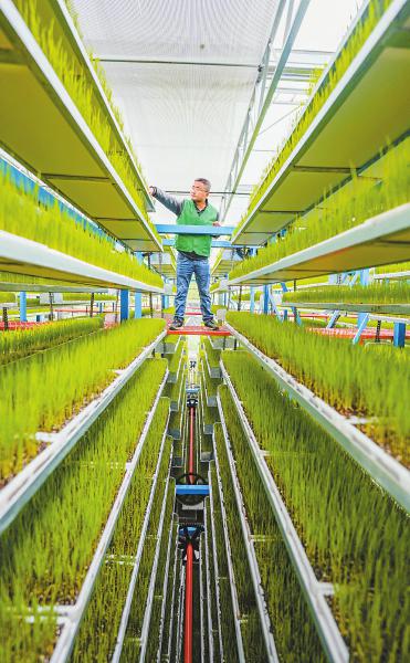 邓清国是遂宁市安居区三家大米现代农业园区育秧中心的负责人。4月21日午后,他在大棚内轻触手机屏幕上的应用软件,头顶上的遮阳网缓缓打开,“秧苗要晒下太阳了。”据悉,这座今年3月新建的育秧中心采用了先进的循环育秧技术,既智能又高效且环保节能。该中心配备有四套循环育秧架,每套满载运行时可承载3000个育秧盘,仅需一周时间就能完成相当于150亩农田所需的秧棚育秧任务。“目前这里培育着150多万株秧苗,只需单人通过手机操控即可实现秧苗在循环架内的全程育秧。”邓清国说。