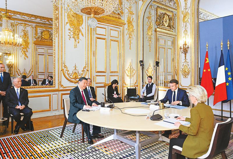 新华社巴黎5月6日电(记者 严明 韩墨)当地时间5月6日上午,国家主席习近平应邀在巴黎爱丽舍宫同法国总统马克龙、欧盟委员会主席冯德莱恩举行中法欧领导人三方会晤。
