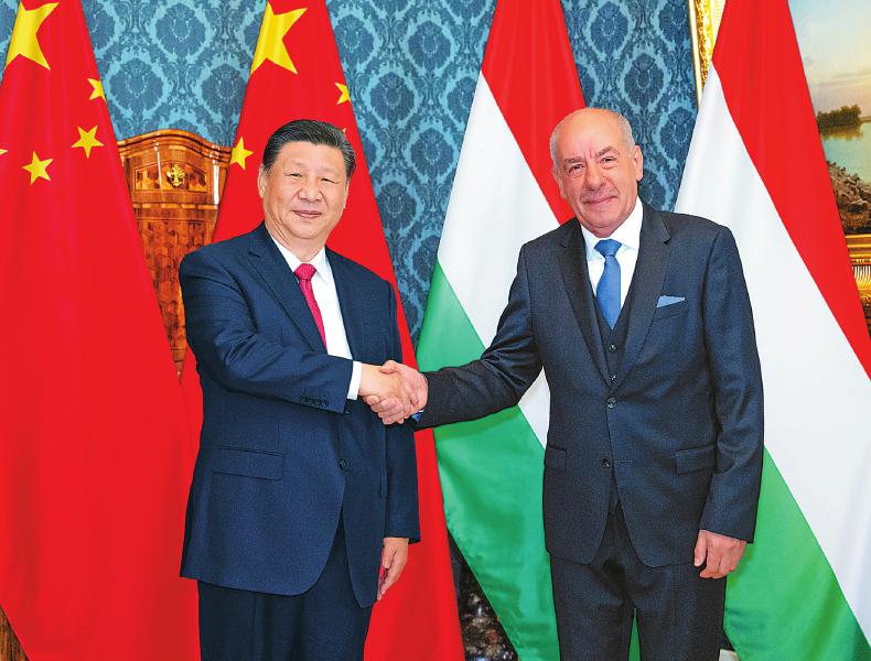 习近平强调,中方赞赏匈方长期坚定奉行对华友好政策,在涉台、涉港、人权等问题上旗帜鲜明坚定支持中方。中方坚定支持匈牙利走符合本国国情的发展道路,愿同匈方筑牢政治互信,加强两国政府、立法机构、政党交流,继续坚定支持彼此核心利益和重大关切。中国式现代化一定会为包括匈牙利在内的世界各国带来更多机遇,欢迎匈牙利成为中国式现代化道路上的同行者。中方愿同匈方加强两国发展战略对接,发挥好中匈政府间“一带一路”合作委员会等机制作用,有序推进基础设施、绿色能源等领域合作,按期完成匈塞铁路建设。积极拓展清洁能源、人工智能等新兴领域合作。