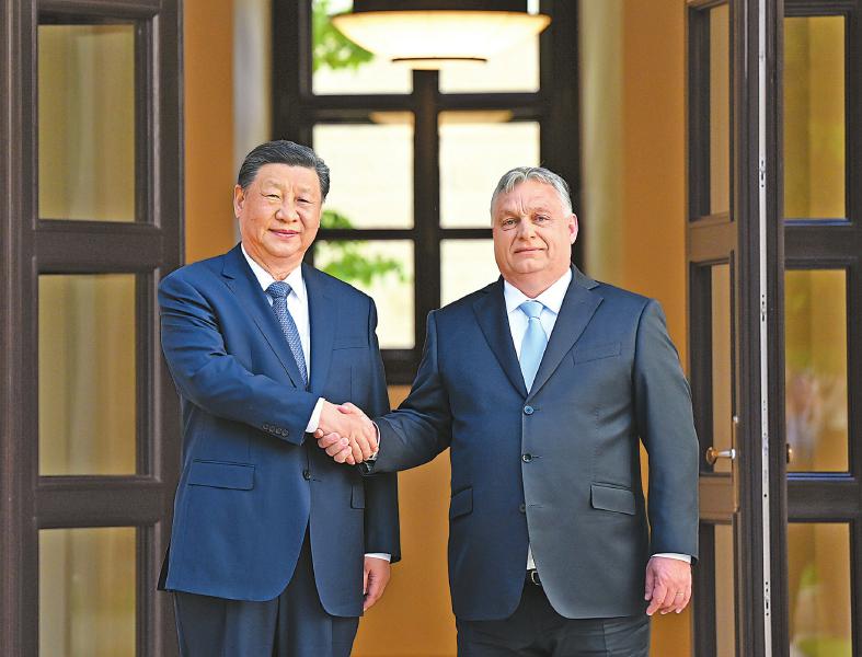 欧尔班表示,匈方不会忘记中方在匈牙利遭遇困难时及时提供宝贵支持,将继续坚定不移做中国的“铁杆”朋友,支持中方维护自身核心利益和正当权利。匈方过去、现在、将来都坚定恪守一个中国原则。匈中共建“一带一路”取得巨大成功,为匈牙利创造了就业、改善了民生。匈方希望同中方继续在“一带一路”框架内推进匈塞铁路等大型基础设施项目合作,加强经贸、新能源等领域合作,欢迎更多中国企业赴匈投资合作。匈方不认同所谓“产能过剩”或“去风险”等说法。匈方深化对华合作的决心坚定不移,不会受到任何力量的干扰。匈方支持习近平主席提出的系列全球倡议,赞赏中方为促进世界和平发挥的重要作用。中国的发展对欧洲是机遇而不是风险。匈方愿同中方加强多边沟通协作,共同维护世界和平与稳定。作为下半年欧盟轮值主席国,匈方愿为推动欧中关系健康发展和中东欧国家同中国合作作出积极努力。