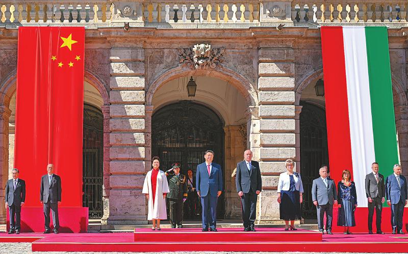 习近平发表书面讲话。习近平指出,很高兴应舒尤克总统和欧尔班总理的盛情邀请,对美丽的匈牙利进行国事访问。中匈两国是相互信赖的好朋友、好伙伴。近年来,双方高层交往密切,互信水平不断提高,共建“一带一路”合作成果丰硕,人文交流丰富多彩,在国际和地区事务中紧密协调和配合,为相互尊重、公平正义、合作共赢的新型国际关系树立起一个典范。今年是中匈建交75周年,两国关系发展迎来重要契机。我期待着同舒尤克总统、欧尔班总理等匈牙利领导人会晤,共同规划两国合作发展新蓝图,引领中匈关系向着更高水平迈进。我相信,无论国际风云如何变幻,中匈两国必将坚持以宽广视野、长远眼光看待和把握双边关系,踔厉奋发,勇毅前行,携手构建人类命运共同体,为促进世界和平稳定和发展繁荣作出应有贡献。相信在双方共同努力下,这次访问一定会取得圆满成功,推动中匈关系迎来更加美好的明天。