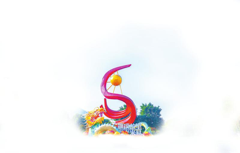 在G5京昆高速米易县城的出入口,矗立着一座外形酷似汉字“易”的城市雕塑。一条弯曲的红色曲线,上半截围绕着金色的太阳,下半截则好像红色绸带飘散开来,象征着奔腾流淌的米易人的母亲河——安宁河。当地人告诉记者,这是米易的城市形象标识,名为:米易之“易”。