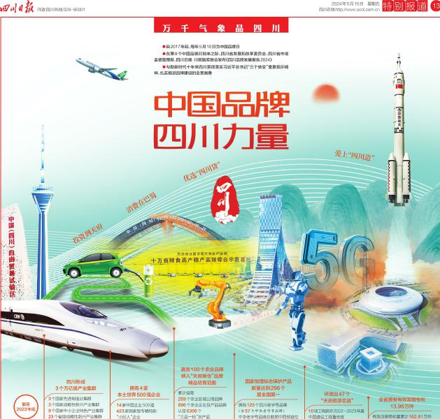 经国务院批准,自2017年起,每年5月10日设立为中国品牌日。在第8个中国品牌日到来之际,四川省发展和改革委员会、四川省市场监督管理局、四川日报·川观智库联合发布《四川品牌发展报告2024》,勾勒出新时代十年来四川贯彻落实习近平总书记“三个转变”重要指示精神、扎实推进品牌建设的全景画像。