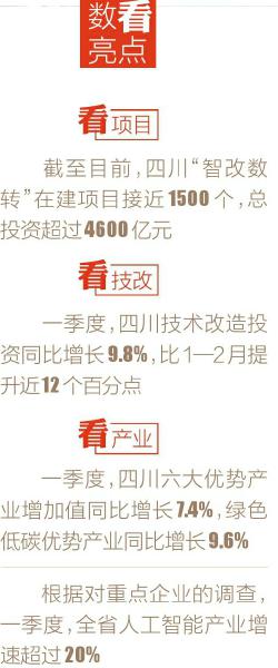 行动实施不到半年时间,四川“智改数转”在建项目已接近1500个,总投资超过4600亿元。与此同时,以智能制造为主要方向的技改投资数据,也印证了四川制造业“智改数转”的良好起势:一季度,四川技术改造投资同比增长9.8%,比1—2月提升近12个百分点。