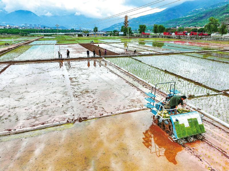 5月4日,在汉源县前域镇,村民抢抓农时,移栽秧苗,为粮食稳产丰产打牢基础。雅安观察 黄刚 摄
