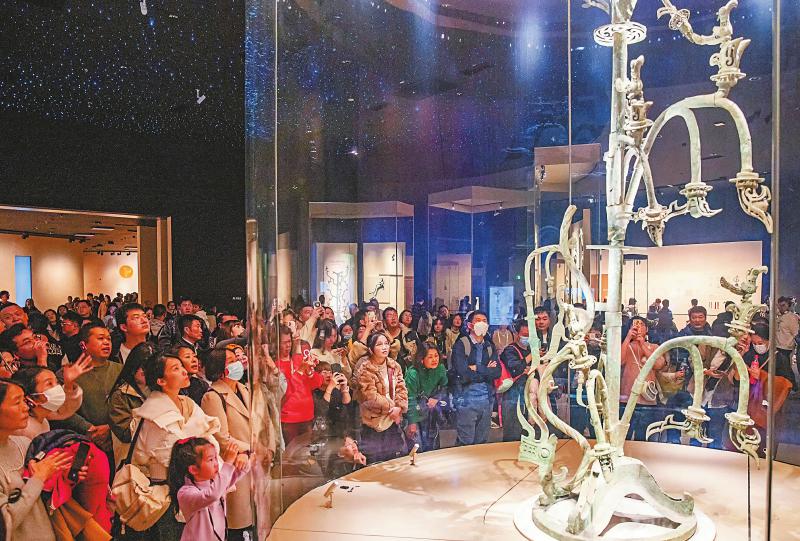 记者在三星堆博物馆看到,多管齐下整治后,博物馆观展环境有了较大改善。但因为博物馆热度持续,展厅现场不可避免出现人潮涌动的情况,重点展柜前更是“打拥堂”。不少游客还反馈,博物馆门票依旧难抢。
