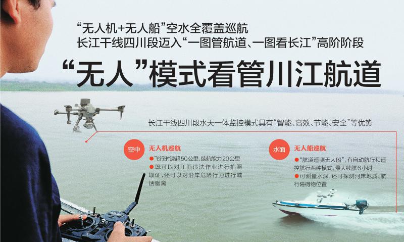 走访中记者了解到,长江干线四川段航道上,各种无人机、无人船等高科技产品已广泛应用。