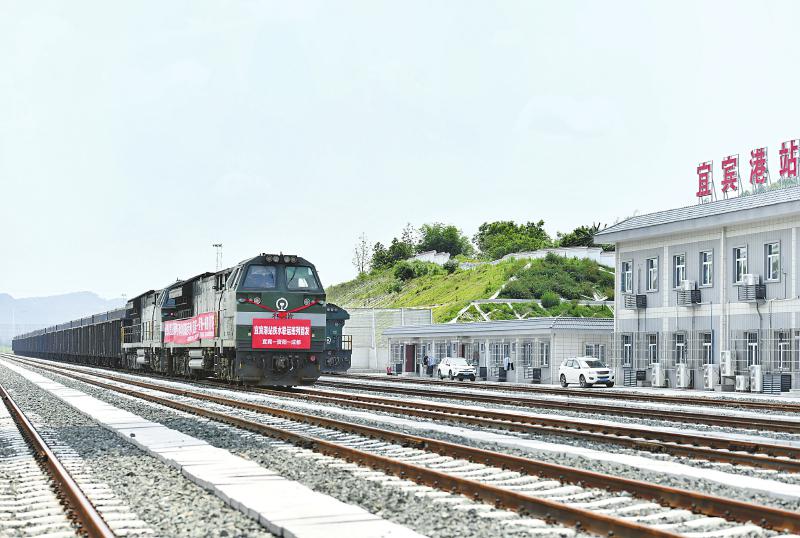宜宾港站首列铁水联运班列由中国铁路成都局集团有限公司与四川宜宾港(集团)有限公司、宜宾沿江铁路管理有限公司联合开行,货物从云南水富港、四川文富港码头分别装船发运至宜宾港上岸后,在宜宾港站通过铁路发运至成渝铁路侯家坪站。