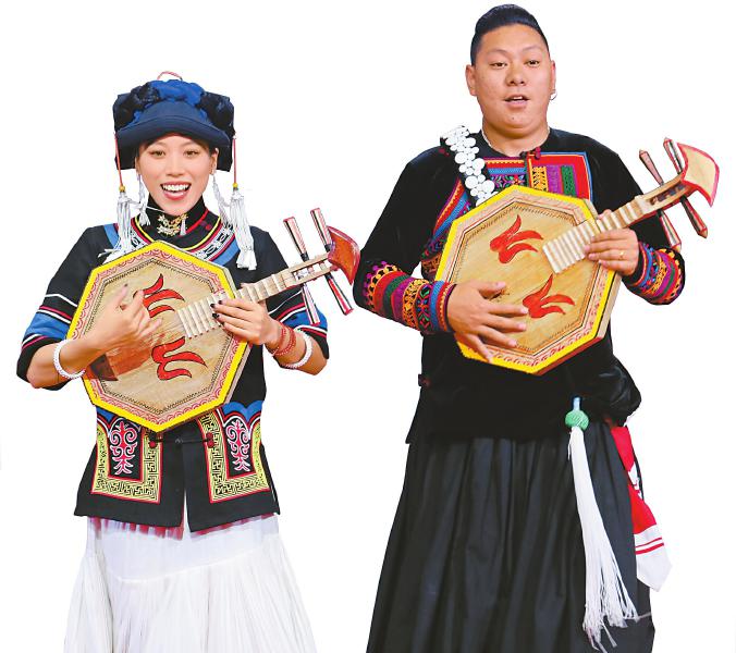 从峨边来到中国品牌日演出舞台的彝族姑娘和小伙。四川日报全媒体记者郝飞摄