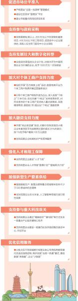 针对个体经营者,成都提出,支持符合条件的临街商铺开展外摆经营,在具备条件的餐饮相对集中街道划定临停路段,允许车辆在就餐时段临时停放。同时,成都将引导个体工商户转型升级为企业,深入实施“个转企”三年行动,优化完善“个转企”支持政策体系,对符合条件的个体工商户支持纳入重点培育库、实施精准帮扶,鼓励区(市)县出台“个转企”激励政策。