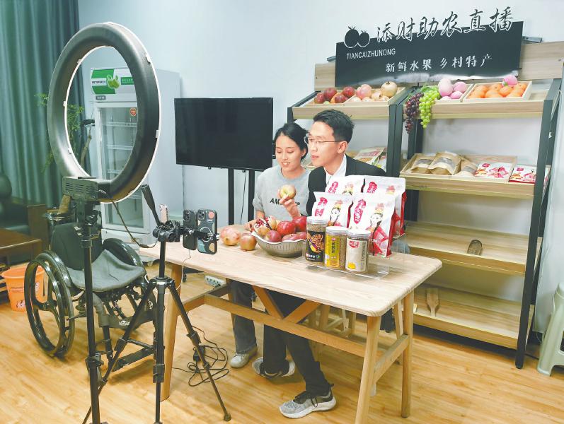 在成都市蒲江县,残疾人杨添财是当地小有名气的“创业先锋”。杨添财6岁时因为突发肌肉萎缩,双腿渐渐失去了行走能力,21岁开始接触电商行业,通过互联网面向全国销售蒲江特色农产品,8年来已销售7000余万斤水果。同时,杨添财还创立了成都百悦生态农业开发有限公司,带动30余名残疾人通过电商行业创业就业,助农增收300多万元。