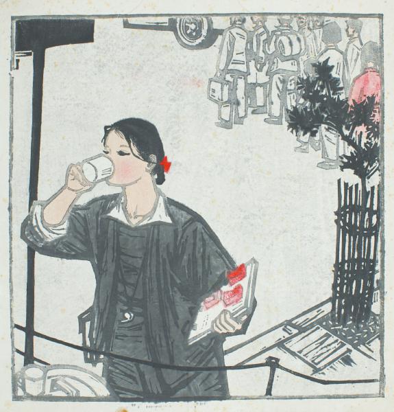 一些艺术大家的早期作品,也得以罕见地出现在本次展览中,著名当代艺术家徐冰的黑白木刻《打稻子的姑娘们》就是一例。1978年至1983年,青年徐冰创作了100多幅木刻小品,统称《碎玉集》。其中,1981年创作的《打稻子的姑娘们》表现农村生活劳作场景,但形式上已和国内此前的版画创作有了明显的差异,更突出版画语言的形式美,强调色块内的点、线组合,使整个画面有一种内在的张力,富有律动感。