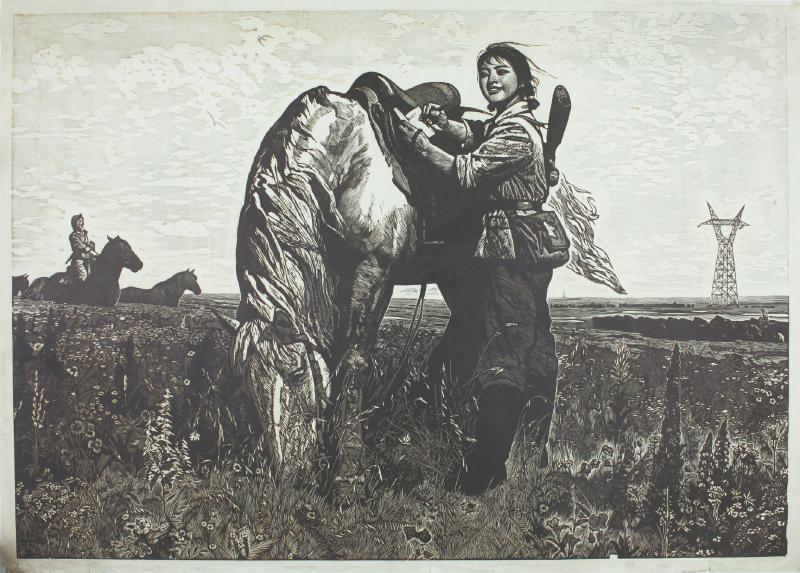 徐匡《草地诗篇》黑白木刻 73cm×104cm 1975年