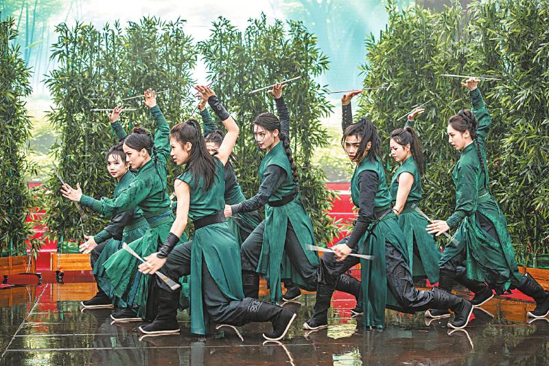 “女孩们来自全国各地,她们的教练是峨眉本地的峨眉武术非遗传承人。”记者通过峨眉派女子功夫团负责人李洁瑜了解到,功夫团由一群热爱武术、勇于挑战自我的“女少侠”组成,平日都在峨眉山进行训练,马赵凌云是其中唯一一位“95后”大师姐,此次是其带领8位“00后”师妹一同演出。