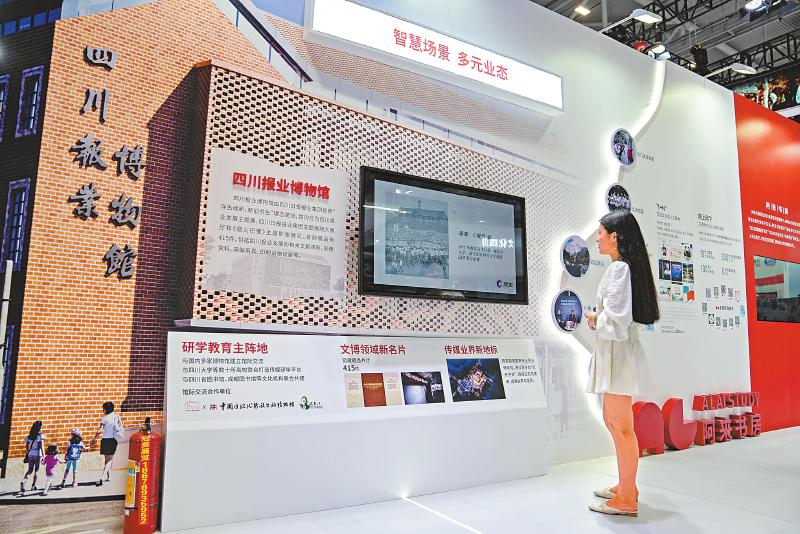 在四川日报报业集团展台,四川报业博物馆图景映入眼帘,同时以川观数字记者等一系列智媒科技应用,让巴蜀文化“活”起来。