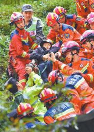 2024年6月18日,四川省消防救援局举行挂牌仪式。 四川省消防救援总队供图汉源“7·20”山洪泥石流灾害发生后,消防指战员合力转移八旬老人。怡霏 摄