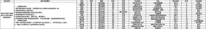 绵阳燃气集团有限公司关于招聘绵阳兴绵燃气有限责任公司游仙客户服务部部长岗位测试成绩的公示