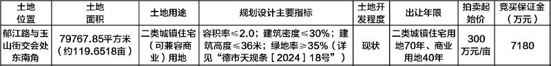 德阳市郁江路与玉山街交会处东南角国有建设用地使用权拍卖出让公告