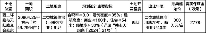 五、本次国有建设用地使用权出让将在2024年12月16日10∶00 开始确认其竞买资格,拍卖会议定于2024年12月16日11∶00在德阳市松花江北路8号德阳市政府政务服务和公共资源交易服务中心大楼8楼801开标厅6(建设银行厅)开始举行。