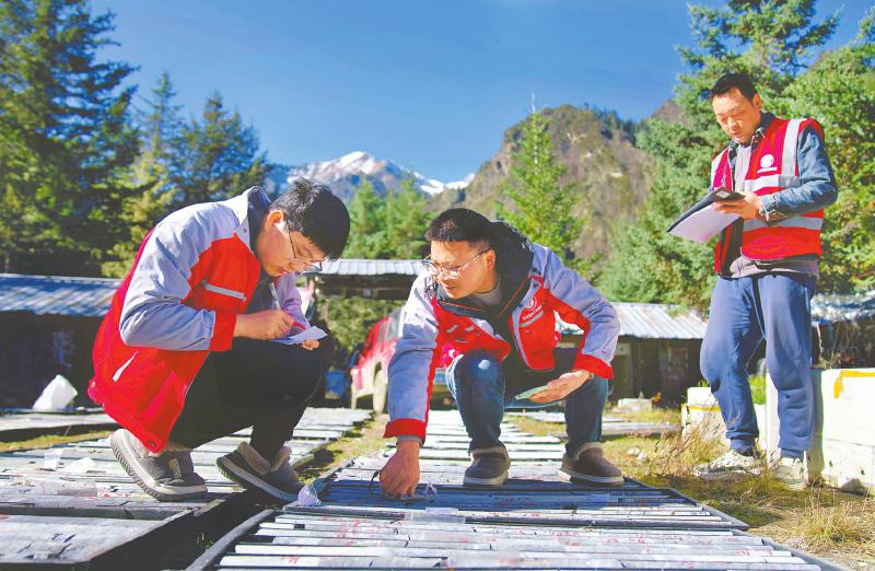 11月的丹巴山林深处,昼夜温差有20多摄氏度。早上8点半,裹着棉服,地质队员秦跃和同伴来到海拔3000米的作业区,按照工作计划,给从钻井提取上来的岩芯编号,如冰柱般的岩芯,记录着地层信息,是寻找镍矿的密码。