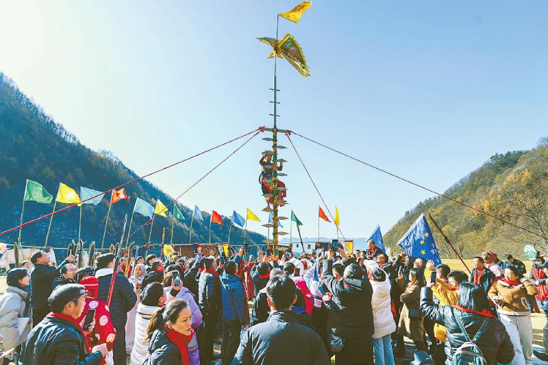 11月25日,旺苍县迎来了“博旅国际联盟”国际知名旅行商团队。在两天的行程里,他们游览盐井河峡谷、米仓山大峡谷,体验千人嗦粉,观看红色题材沉浸式情景剧《信仰之城》,品尝全牛宴等,体验独具魅力的旺苍蜀道文化、茶文化和美食文化。此前,旺苍县与博旅国际联盟成功签署战略合作框架协议,借助联盟传播平台包装推广旺苍文旅资源,为旺苍文旅产业注入“新流量”。图为旅行商观看旺苍县国际级非遗项目端公戏展演。 旺苍县融媒体中心供图
