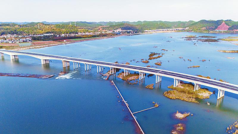 11月29日,遂宁市黄连沱渡改桥项目顺利通车。该项目的核心黄连沱大桥全长约2.7公里,采用双向4车道一级公路技术标准建设。项目建成后,驾车从遂宁市船山区唐家乡到遂宁经开区只需 3分钟。黄连沱大桥的通车不仅改变了两岸居民长期依赖渡船的出行方式,也将促进地方社会经济快速发展。图为11月25日拍摄的黄连沱渡改桥项目。 吴奉家 摄(C视觉)