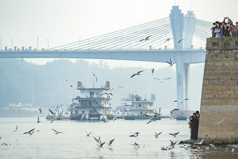 “在长江边,看群鸟竞翔真的太壮观了!”12月1日,来自成都的游客吴亚伟兴奋地说,“今天特意带孩子到泸州市东门口观鸟,不仅遇到了成群结队的红嘴鸥,还目睹了壮观的长江野生鱼群……长江的生态环境确实越来越好了。”如今,在宜宾,赏鸥、看鱼、逛三江六岸,已经成为当地居民和外来游客的休闲新时尚。