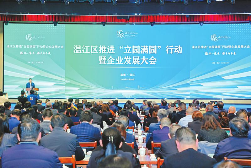 11月29日,成都市温江区推进“立园满园”行动暨企业发展大会召开,140余家企业、高校院所、金融机构和协会商会代表齐聚一堂、共话发展,这也是温江区召开的继去年首届企业发展大会后的又一次大会。
