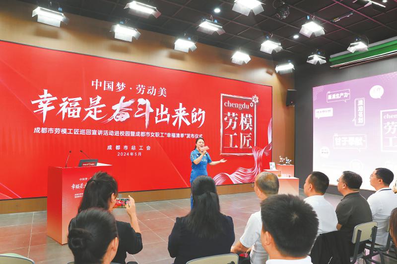 成都市劳模工匠巡回宣讲活动进校园暨成都市女职工“幸福清单”发布仪式现场。